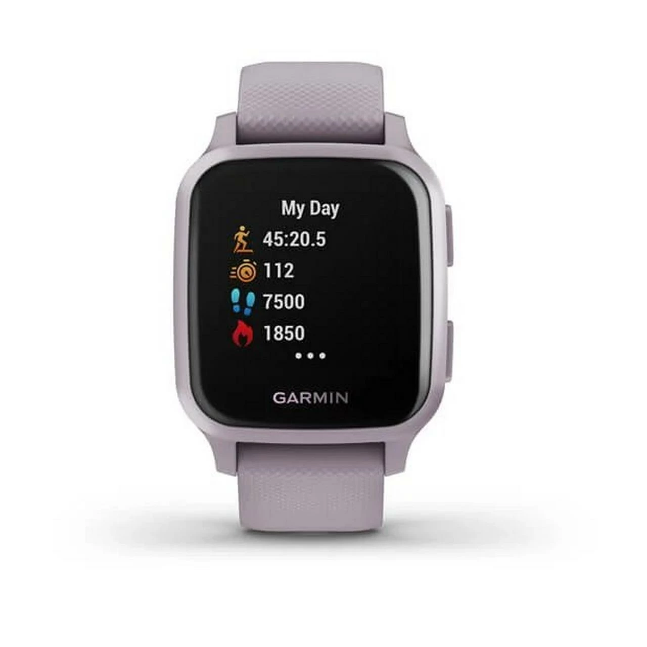 NOW IS THE PERFECT TIME TO MOVE. Featuring a bright color display, the Venu Sq GPS smartwatch combines daily style with health monitoring and fitness features that inspire you to keep moving. With a sleek design that’s suited for every outfit and every part of your day, this watch features a bright color display and optional always-on mode, so you can see everything with a quick glance. From durable Corning® Gorilla® Glass 3 to the lightweight aluminum bezel and comfortable silicone band, this smartwatch was made to keep up with your lifestyle.