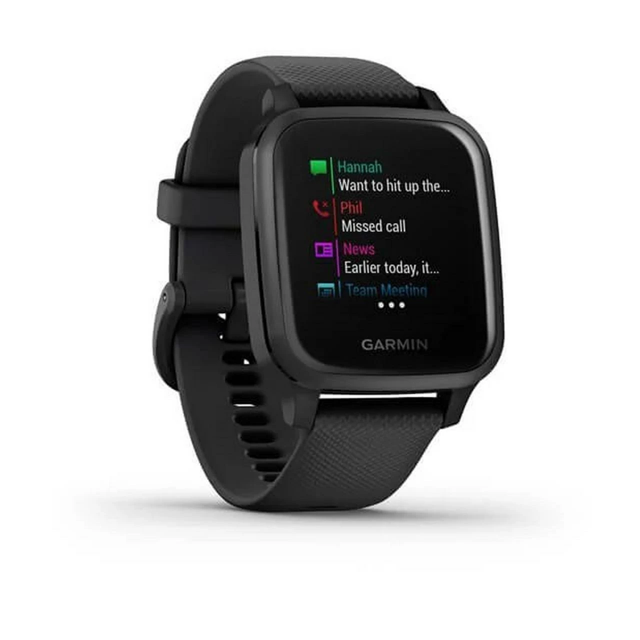 NOW IS THE PERFECT TIME TO MOVE. Featuring a bright color display, the Venu Sq GPS smartwatch combines daily style with health monitoring and fitness features that inspire you to keep moving. With a sleek design that’s suited for every outfit and every part of your day, this watch features a bright color display and optional always-on mode, so you can see everything with a quick glance. From durable Corning® Gorilla® Glass 3 to the lightweight aluminum bezel and comfortable silicone band, this smartwatch was made to keep up with your lifestyle.