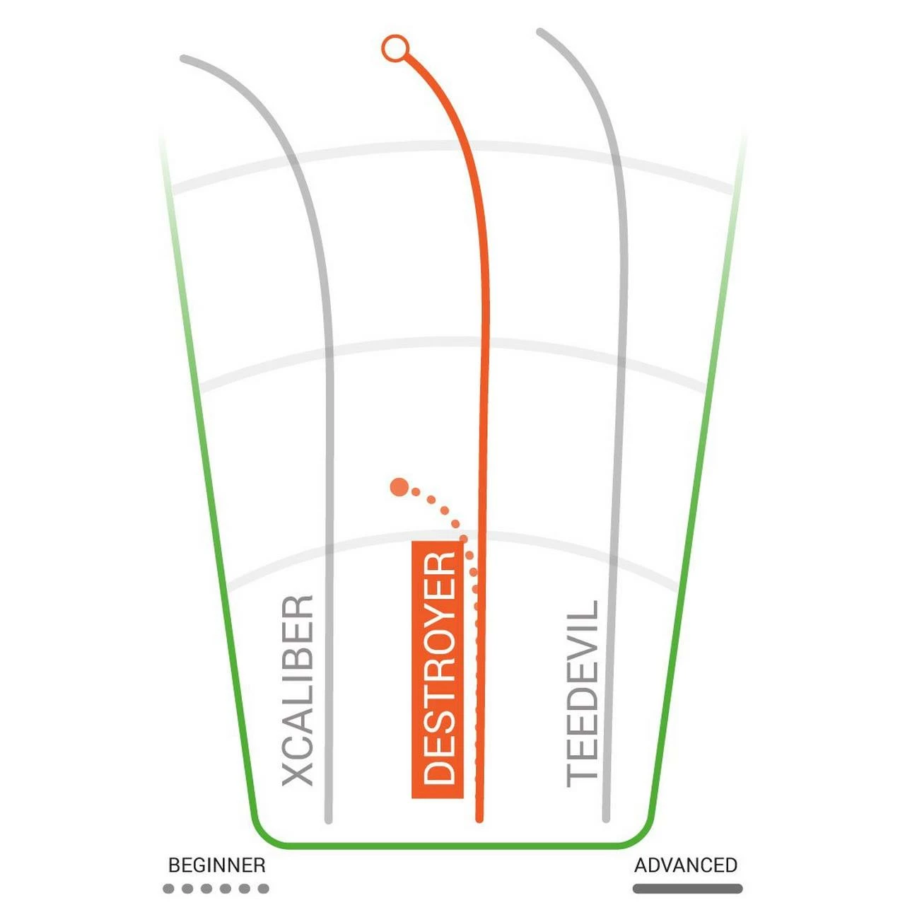 The Destroyer is a very fast stable long distance driver. This disc is much like a faster Wraith, but with a little more high and low speed stability. Great disc for sidearm throwers and those with lots of power. Can handle headwinds and throws with off axis torque. Not suggested for beginning players.