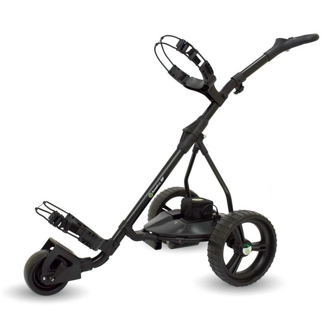 This PowerBug golf trolley has an accessory dock already fitted which allows you to easily accessorise your trolley. The Accessory Dock allows for an Umbrella Holder, Score Card Holder & GPS/Device Holder to be fitted to your golf trolley.