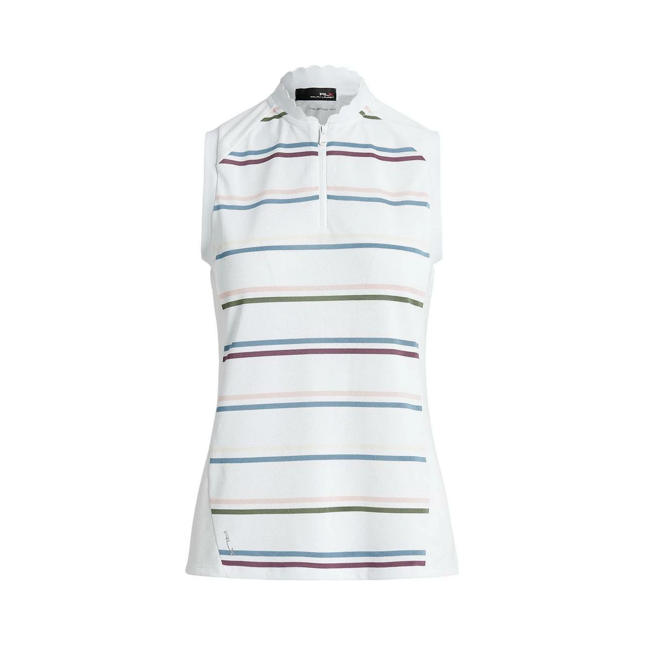 This sleeveless quarter-zip shirt combines a tapered fit and a scalloped collar with stretch piqué and breathable mesh panels for comfort. It’s finished with “RLX” logos at the hem and the neck.
