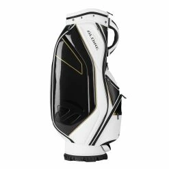 This bag shows the unique image of Stealth Gloire with many design details such as panel cutting, gold line prints, debossed T-bug logo on patented carbon textured synthetic leather, and molded panel with the logo.