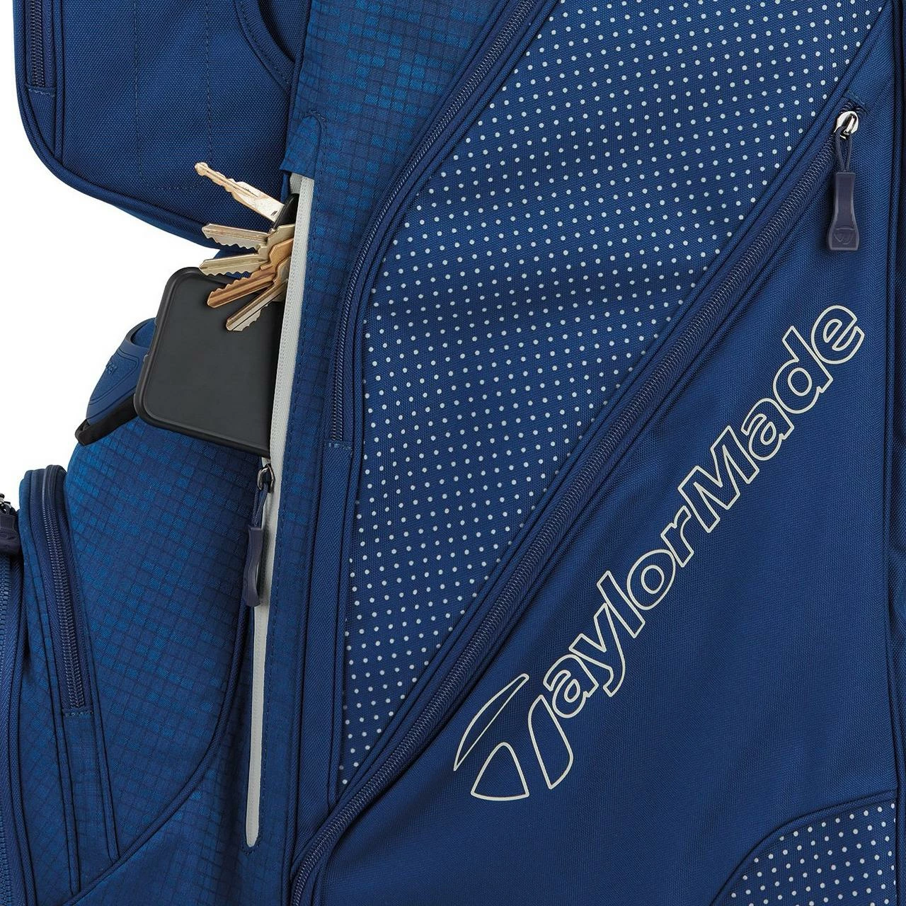 TaylorMade’s ultimate riding bag is engineered for maximum access, organizational ease and max storage – delivering everything the golfer needs and more in a premium package. Seven strategically placed front-facing pockets ensure easy storage and access throughout the round. A magnetic clasp on that dual closure accessories pocket lets you quickly get to frequently used items like tees, golf balls and ball markers. A large cooler pocket with a built-in drainage system allows golfers to store food and beverages for the length of the round.