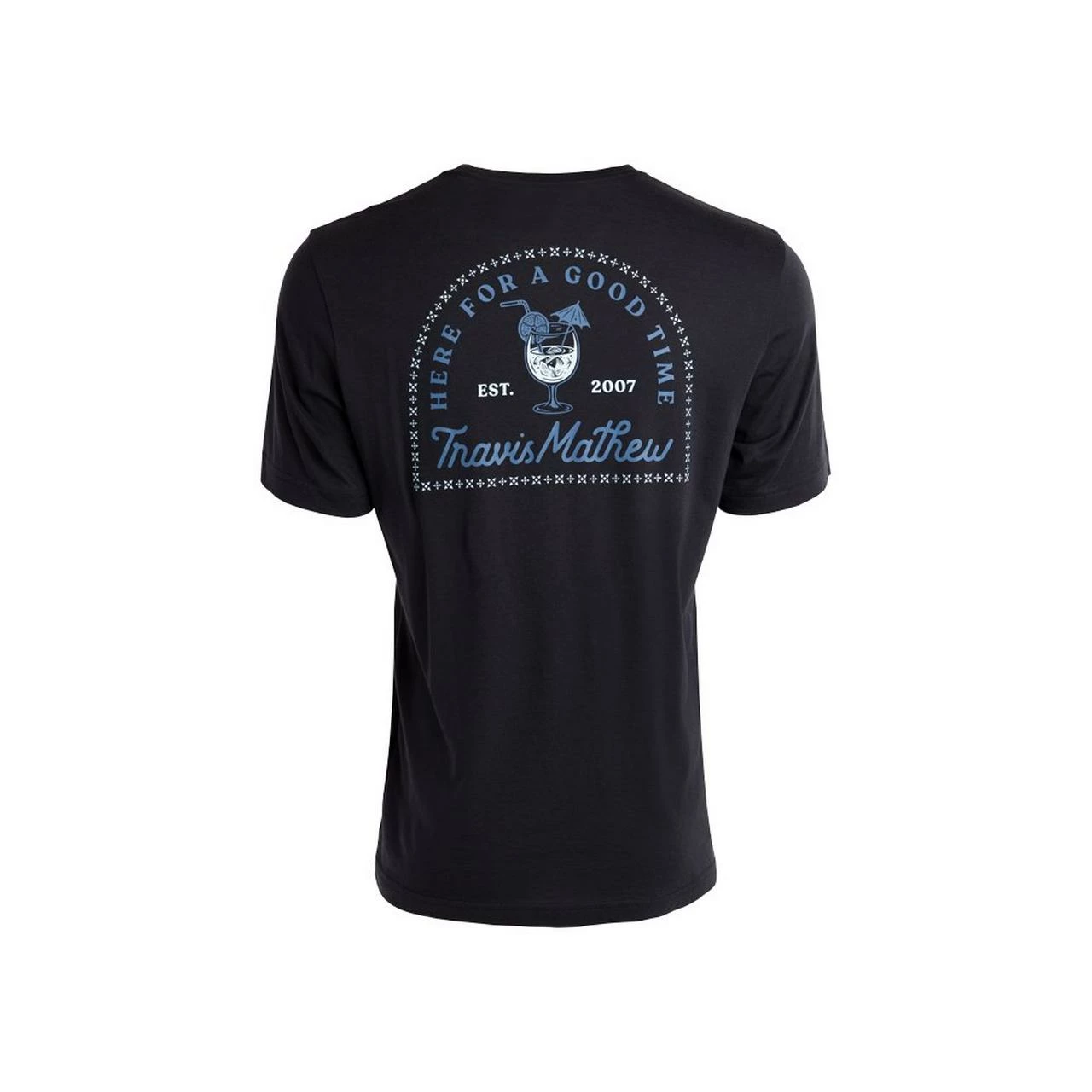 Add a color pop to your outfit with the PACKED LUNCH t-shirt featuring a cocktail graphic with a vibrant blue color that stands out against the black tee.