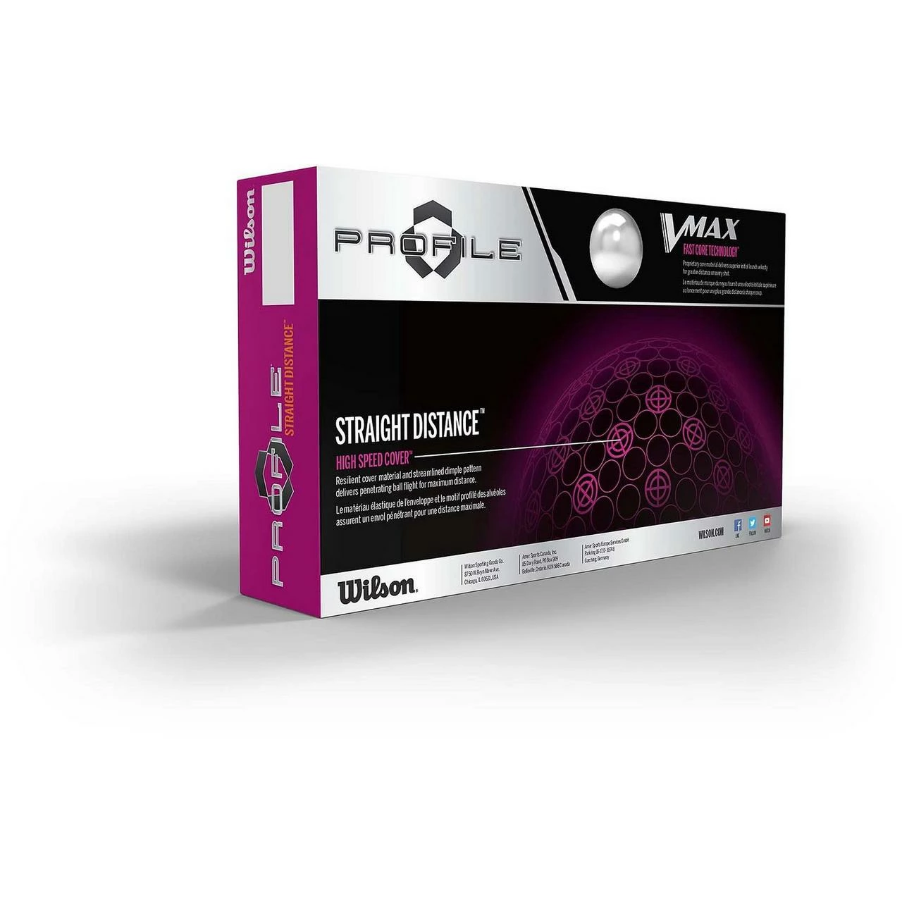 The Wilson Profile V-Max line with a patented dimple pattern, low-to-mid compression and an advanced 2-piece construction.